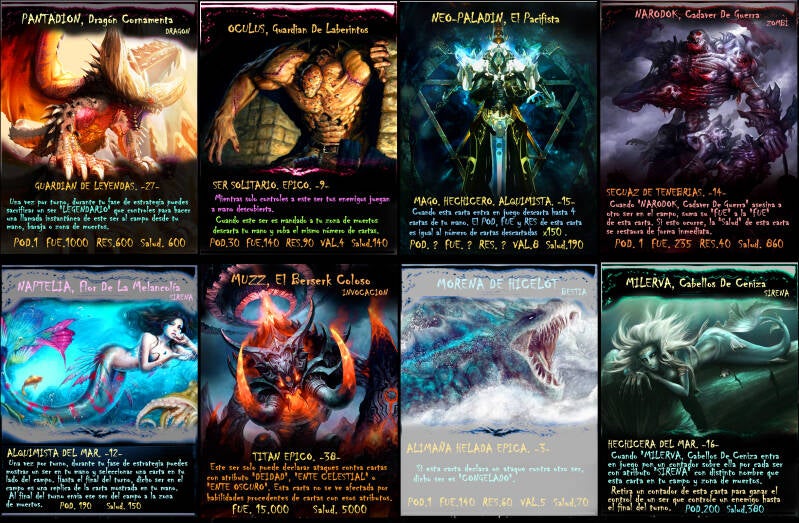 Se trata de las características propias de la carta. El “atributo de tipo base” determinará si se trata de un SER (MAGO, BRUJO, DRAGON, etc), una "INVOCACIÓN", una “ESTRATEGIA”, un “PODER”, un “TERRITORIO” o un “OBJETO”. Si no pone nada se deberá a que es una carta especial (en la mayoría de los casos, un ser).
